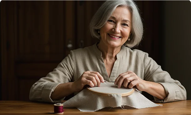 Absolutamente não! O bordado é especialmente benéfico para mulheres maduras, ajudando na coordenação motora, memória e bem-estar emocional. A idade traz paciência e sabedoria qualidades essenciais para uma artista do feito a mão